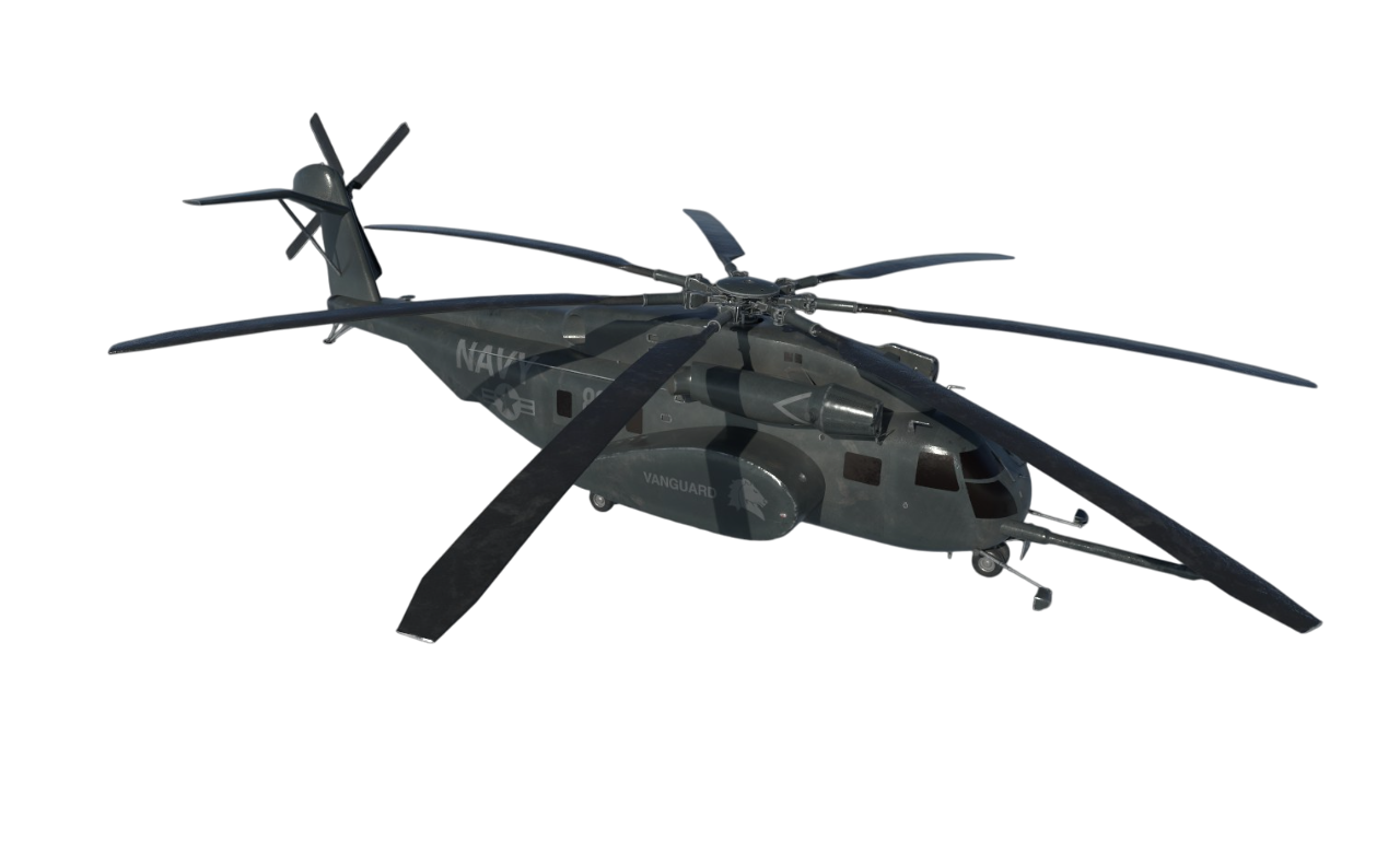 The MH-53E Sea Dragon is a US Navy minesweeper and heavy transport helicopter, known for its large payload capacity and long range. The 3D model of the MH-53E is designed with high detail, including 4K Texture Map (Basecolor, Normal, Metallic, Roughness, AO). The model design ensures accurate proportions and realistic material effects, suitable for training applications, combat simulation, game research and development or VR/AR applications. The accompanying LOD system helps optimize performance, ensuring smooth operation in many different simulation environments.