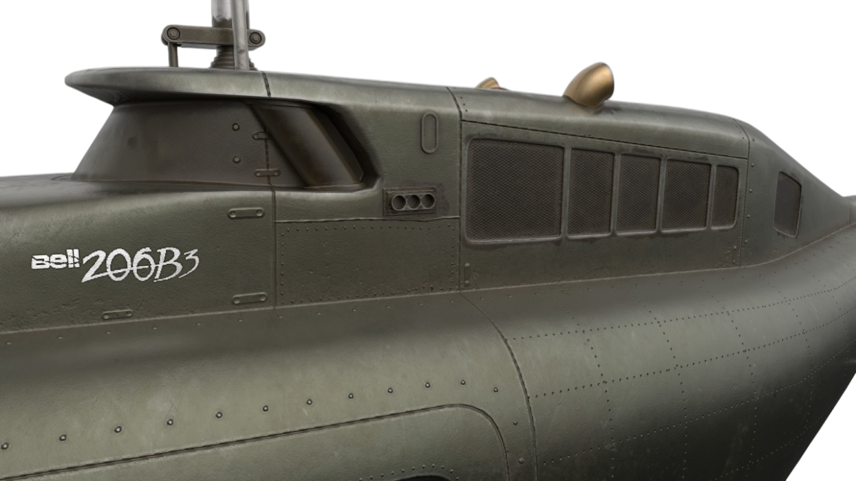 Mô hình 3D của AB-206B được phát triển với tỷ lệ chuẩn xác và chi tiết tinh xảo, hỗ trợ Texture Map 4K (Basecolor, Normal, Metallic, Roughness, AO) nhằm tái hiện hiệu ứng vật liệu một cách trung thực. Với khả năng ứng dụng rộng rãi trong mô phỏng huấn luyện bay, diễn tập chiến thuật, phát triển game và công nghệ VR/AR, mô hình này mang lại trải nghiệm trực quan và hiệu quả. Đồng thời, hệ thống LOD tích hợp giúp tối ưu hóa hiệu năng khi triển khai trên nhiều nền tảng khác nhau.