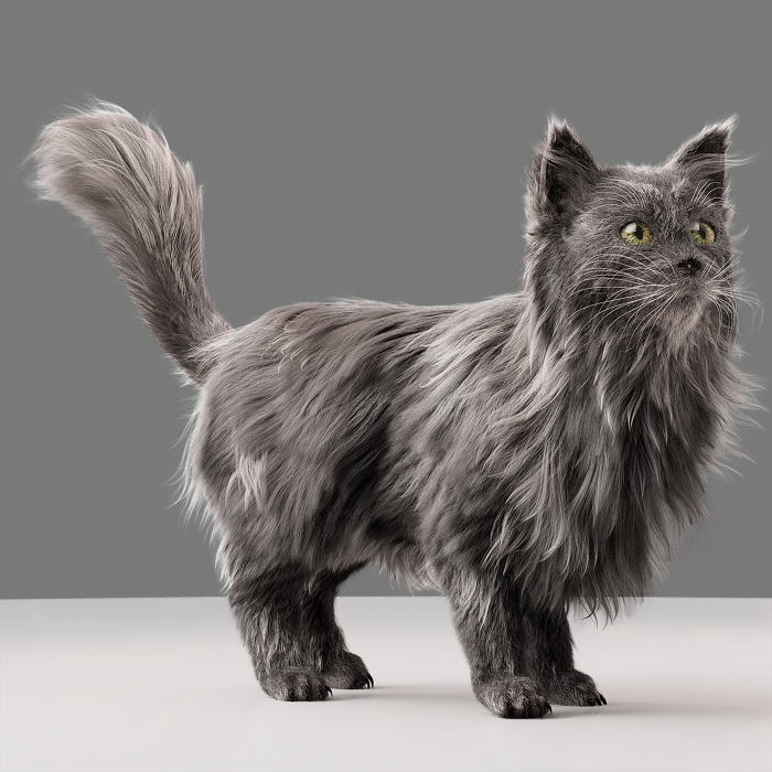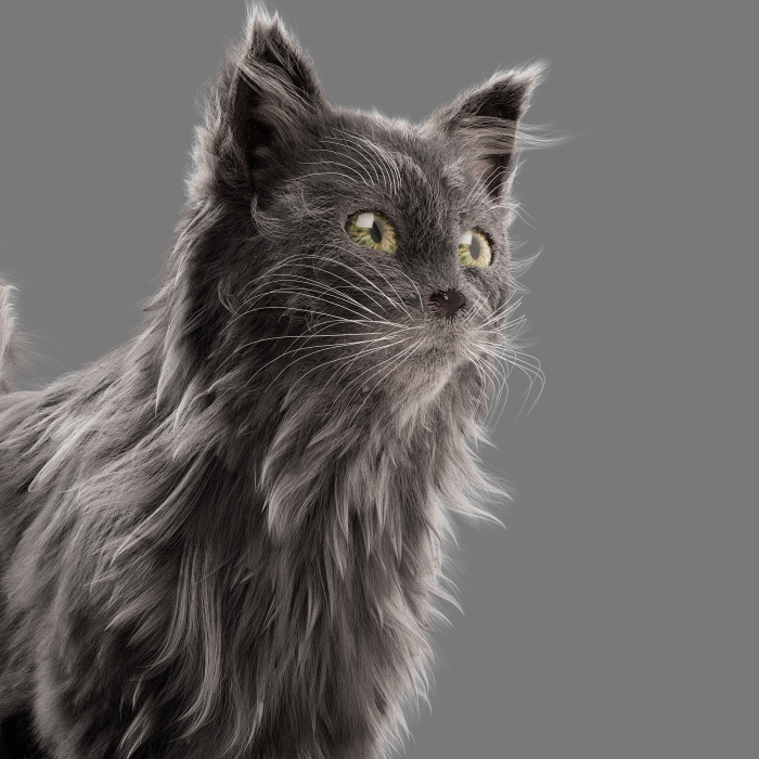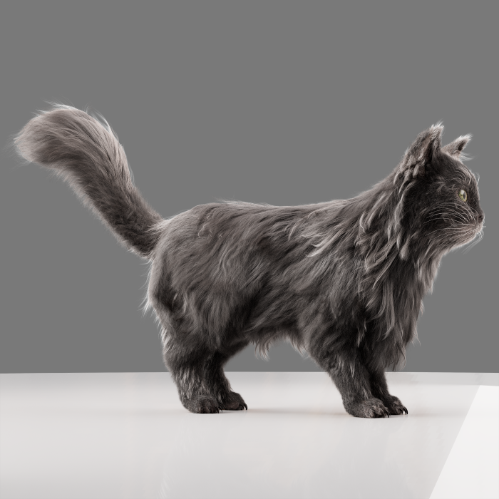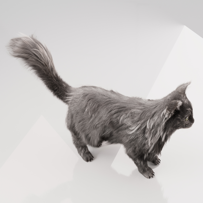 Dự án này được thực hiện nhằm luyện tập kỹ năng tạo lông động vật chi tiết cao, tập trung vào một chú mèo bông với phong cách bán hiện thực. Tôi bắt đầu bằng việc tạo một mô hình cơ bản sạch sẽ, triển khai UV, sau đó tiến hành tạo lông bằng Maya XGen, sử dụng các đường dẫn chính kết hợp với nhiều lớp modifier để tạo sự biến thiên về độ dài, độ kết khối, nhiễu và thêm một số sợi lông bay tự nhiên. Mục tiêu là giữ cho đường viền tổng thể phong phú và tự nhiên—đặc biệt quanh khuôn mặt, tai và cổ—đồng thời vẫn đảm bảo biểu cảm của mèo được thể hiện rõ, không bị che bởi lông ở mắt hay mũi. Phần Lookdev được thực hiện trong trình render PBR để tái hiện hiệu ứng phản chiếu mềm mại trên lớp lông tối, tương phản với phông nền trung tính. Kết quả cuối cùng phù hợp cho các cảnh quay cận cảnh và là một sản phẩm trong portfolio, thể hiện khả năng kiểm soát hướng lông, độ tự nhiên và tính chân thực trong công việc tạo sinh vật.
